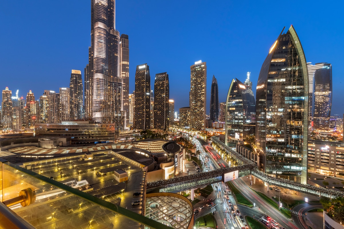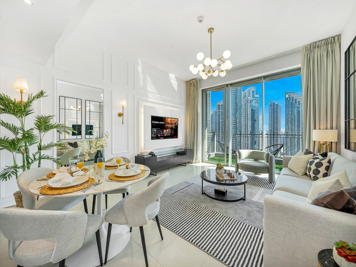 豪华2卧室•哈利法塔景观•私人热水浴缸•步行2迪拜购物中心