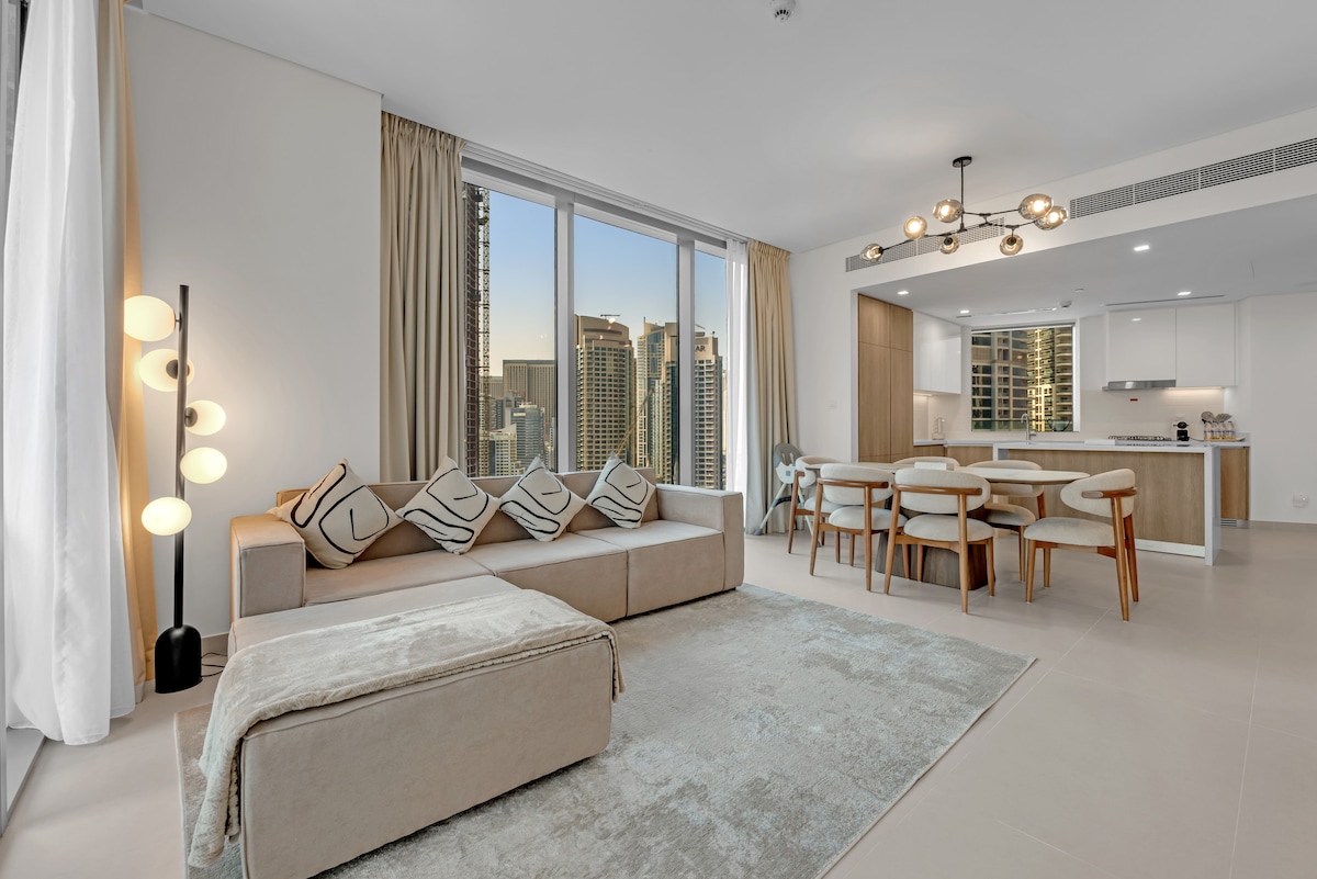 Experience beachfront elegance at its best. Stay in our brand new 1 BHK apartment at Marina Vista Tower, perfectly located along the pristine shores of Emaar Beachfront - Dubai’s most exclusive island community nestled between Dubai Marina and Palm Jumeirah. This sought after destination offers residents and guests a unique blend of resort-style beachfront living and easy access to the city’s vibrant hotspots. Spanning 80 m², this modern and stylish retreat comfortably hosts up to 4 guests.