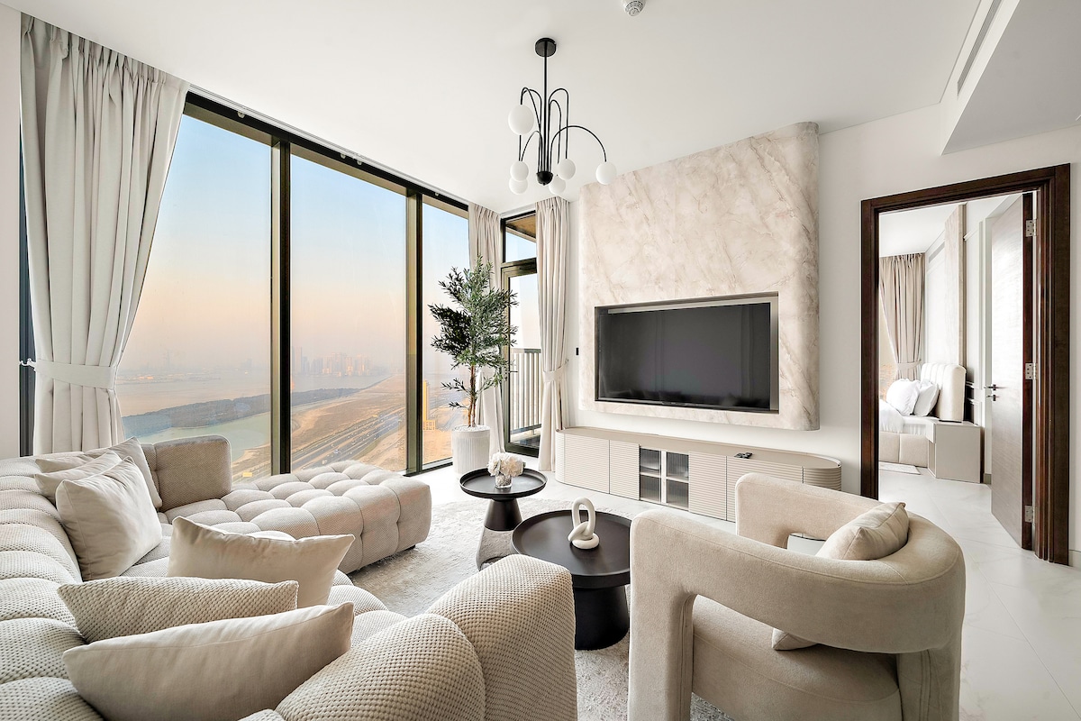 🔥🔥🔥 Hot Offer: We're currently offering 6% discount for 3+ nights stay, 15% discount for 7+ nights stay and 30% discount on 30+ nights stay. 🔥🔥🔥 This 1104 sq.ft apartment on the 27th floor of Palace Residences offers front-row views of Dubai Creek, canal and beach. Built by Emaar, Dubai's top developer, the extended balcony is something you’ll remember long after checkout. In Dubai Creek Harbour, you’re steps from Central Park, the Marina & Yacht Club, plus 55 shops and stores nearby.