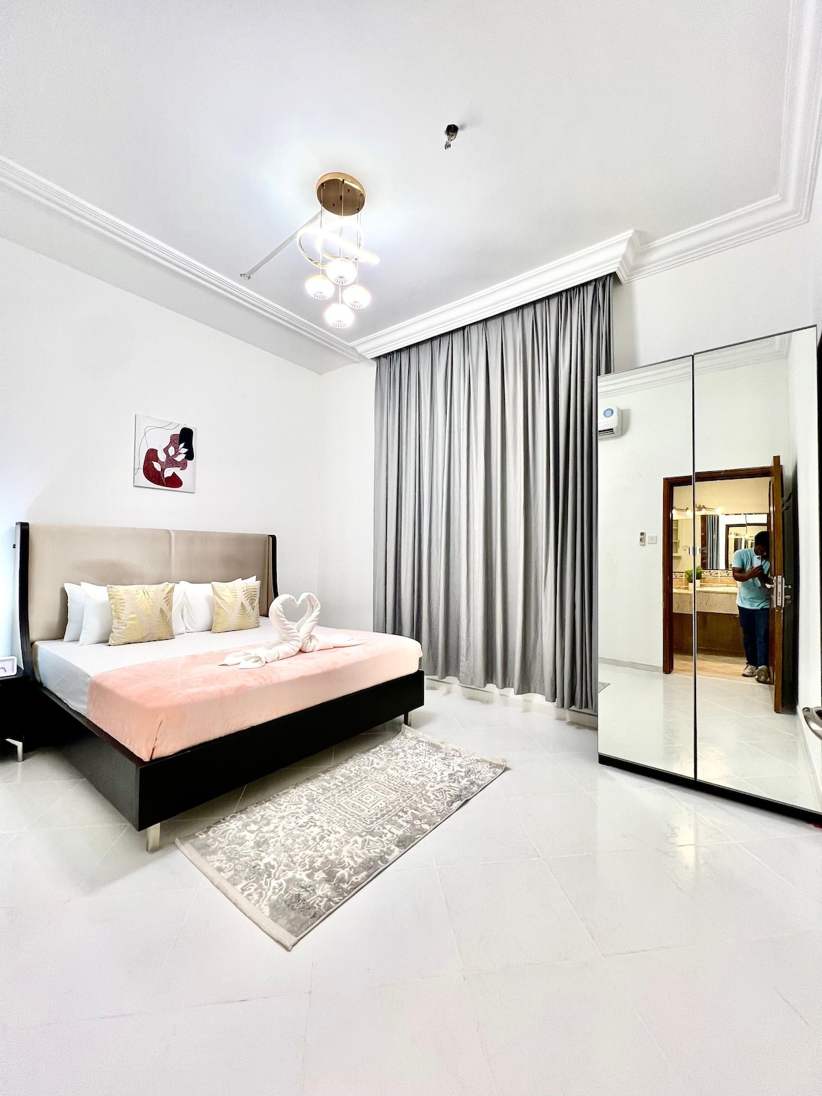 Relax in this spacious Studio room for 3 with a majestic decor 🕍!. Staying at this fully private non shared studio room you are only 15 mins walk away from Max Metro Station, 5 mins drive away from Dubai frame and 9 mins drive away from World Trade Centre. Moreover, there are Grocery shops, Barbershops, Mosques, restaurants & Cafes just walking distance away. We offer free onsite parking, in-unit laundry facility, bike rentals and more. Come unwind in this Studio haven 🫶