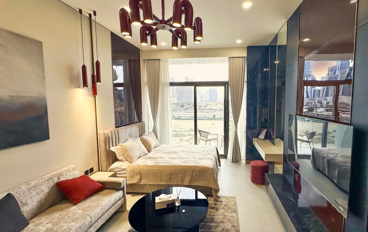 Amazing infinity pool & Spa Accommodates up to 4 persons. king bed + sofa Bed (queen) Hotel Grade amenities include: Pool, Gym, Spa, salon, kids pool, coffee shop & more. This studio apartment is located in the heart of Business Bay, Downtown Dubai, with breathtaking views of Dubai Water Canal and partial views of Burj Khalifa. It is also within walking distance of Dubai Mall, the world's largest shopping mall. The apartment is equipped with everything you need for a comfortable stay.