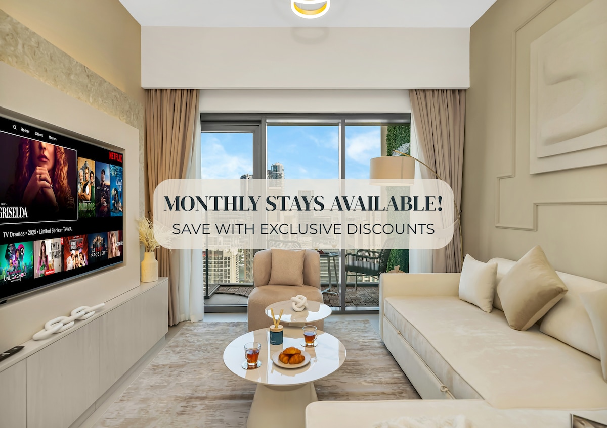 ✔️Monthly stays available — message us for exclusive discounted rates. Step into a realm of unparalleled luxury in our 1BR Sky Suite, housed in the iconic Burj Royale. With keyless ease, a cutting-edge Home System, and the newest Smart TVs, sophistication meets comfort. Panoramic vistas of Downtown Dubai are your daily backdrop. Dive into world-class offerings: dual pools, a state-of-the-art gym, and more. Dubai Mall and Burj Khalifa are at your doorstep. Experience ultimate relaxation.