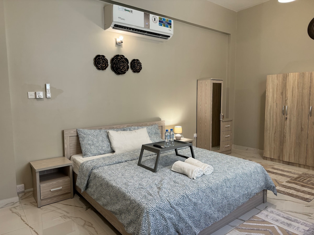 It's a huge apartment of 1 bedroom (930sqft), 5 min to Burj Khalifa and direct access to the canal by the lift. King bed and 1 sofa bed too. The views are AMAZING!😱 You can see the skyline and Burj Khalifa from the pool🏊, and design district from the balcony ☀️ Wifi and 1 private parking slot of course! 😃 Amazing gym and playground area for kids, jacuzzi & sauna too! Everything is included, no extra tourism fee, or any other hidden costs. Enjoy!!