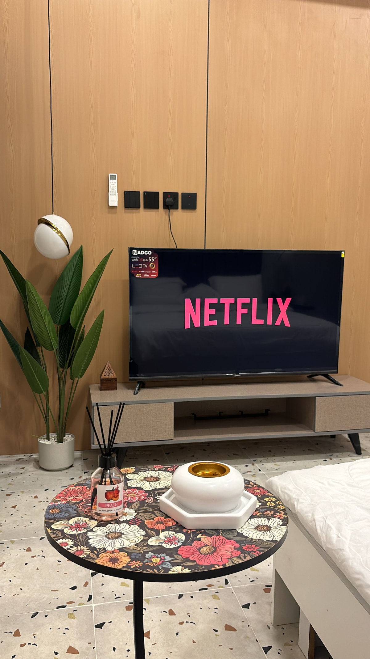 استرخ في هذا المسكن الهادئ والأنيق واستمتع بتجربة فريدة من نوعها بوجود جميع احتياجاتك يحتوي المسكن دخول ذاتي لتتمتع بالخصوصية و انترنت و شاشة ذكية كبيرة تدعم جميع البرامج شاهد ، نت فلكس ، يوتيوب لتتمتع بمشاهدة جميع ما تحب كما يوجد اضاءات متنوعه تساعد على الاسترخاء والشعور بالراحة