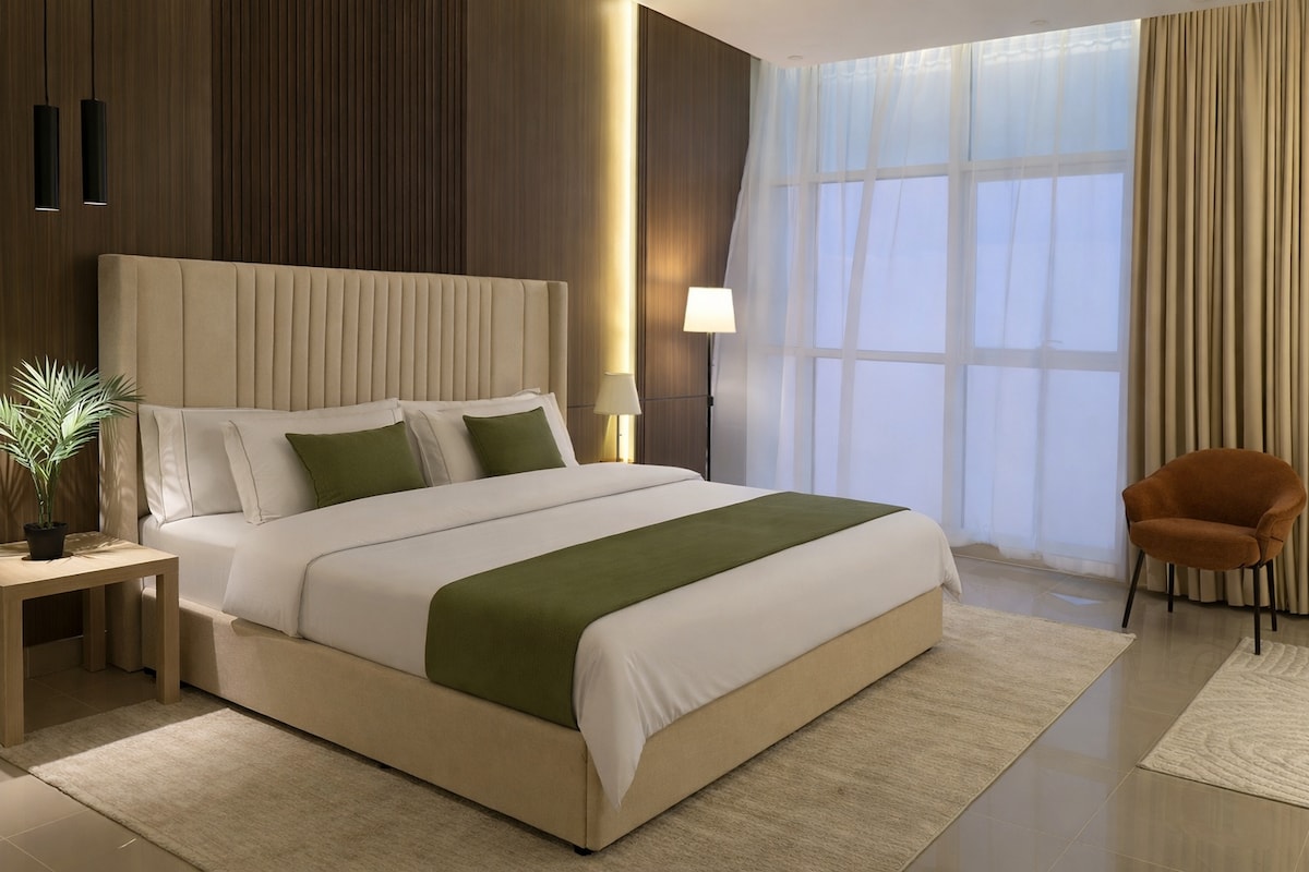 استمتع بالاقامة في غرفة نوم وصالة أنيقة في منتصف بريدة مع شاشة ذكية وأيضًا واي فاي مجاني * تتميز بالقرب من الكثير المرافق العامة ( النخيل بلازا، مستشفى الدكتور سليمان الحبيب ، مستشفى الملك فهد التخصصي ، مستشفى الأطفال والنساء والولادة ) 10 دقائق عن شارع البخاري