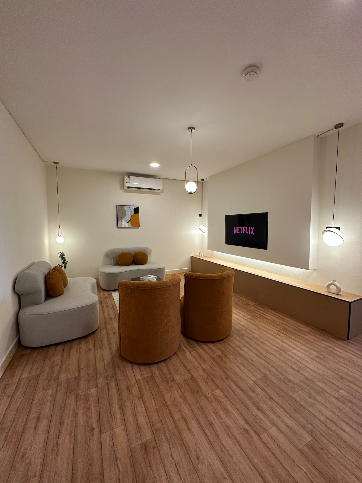 جرب المزيج المثالي من الفخامه الحديثه والراحه الهادئه في شقة فندقيه خاصة بتصميم بوهيمي دافئ وعصري وتقع في حي الفايزية بجانب الحديقه على بعد خطوات كما يمتاز الموقع بقربه من جميع الاحتياجات اليومية تمتاز الشقه بفندق حديث ومدخل جميل و قريباً سوف تتوفر فيه بعض الخدمات الفندقيه مثل المسبح وصالة الرياضه وقسم المساج .. تتوفر جميع الاحتياجات في الشقه وتتميز بغرفة نوم واسعه بسرير ماستر مزود باللباد وغرفة معيشه بتصميمها الجميل و شاشه ذكيه بحجم 70 بوصه متوفر نت فلكلس ويوتيوب و شاهد , توجد جلسه بار جانبيه