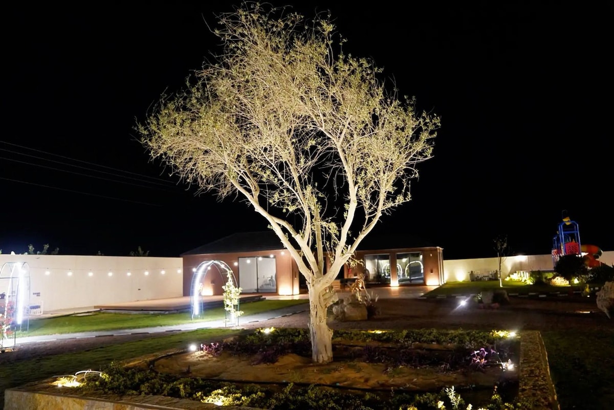استرخ معنا في كوتج الفريد بديكوراته والهادئ بموقعه.. حيث الرقي والفخامة والأجواء الريفية مع الضيافة الخاصة التي تليق بك -جناح رئيسي فندقي متكامل مع شرفة على المسبح باطلالة راقية - دورة مياه ومروش مطلّ -غرفة للأطفال 4 أسرة مطلة على الفناء -موزع مع حمام ومغسلة مشتركة بديكور مميز -صالة مُطلة على مسبح الفناء الخلفي والحديقة الداخلية والفناء الأمامي بأجواء بانورامية تليق بذوق ضيوفنا -مطبخ بميكرويف وثلاجة وغلاية مكمّل بتجهيزات فندقية -طاولة طعام وسفرة ريفية -مسبح بجلسة خارجية وكراسي تشميس -مدخل سيارة