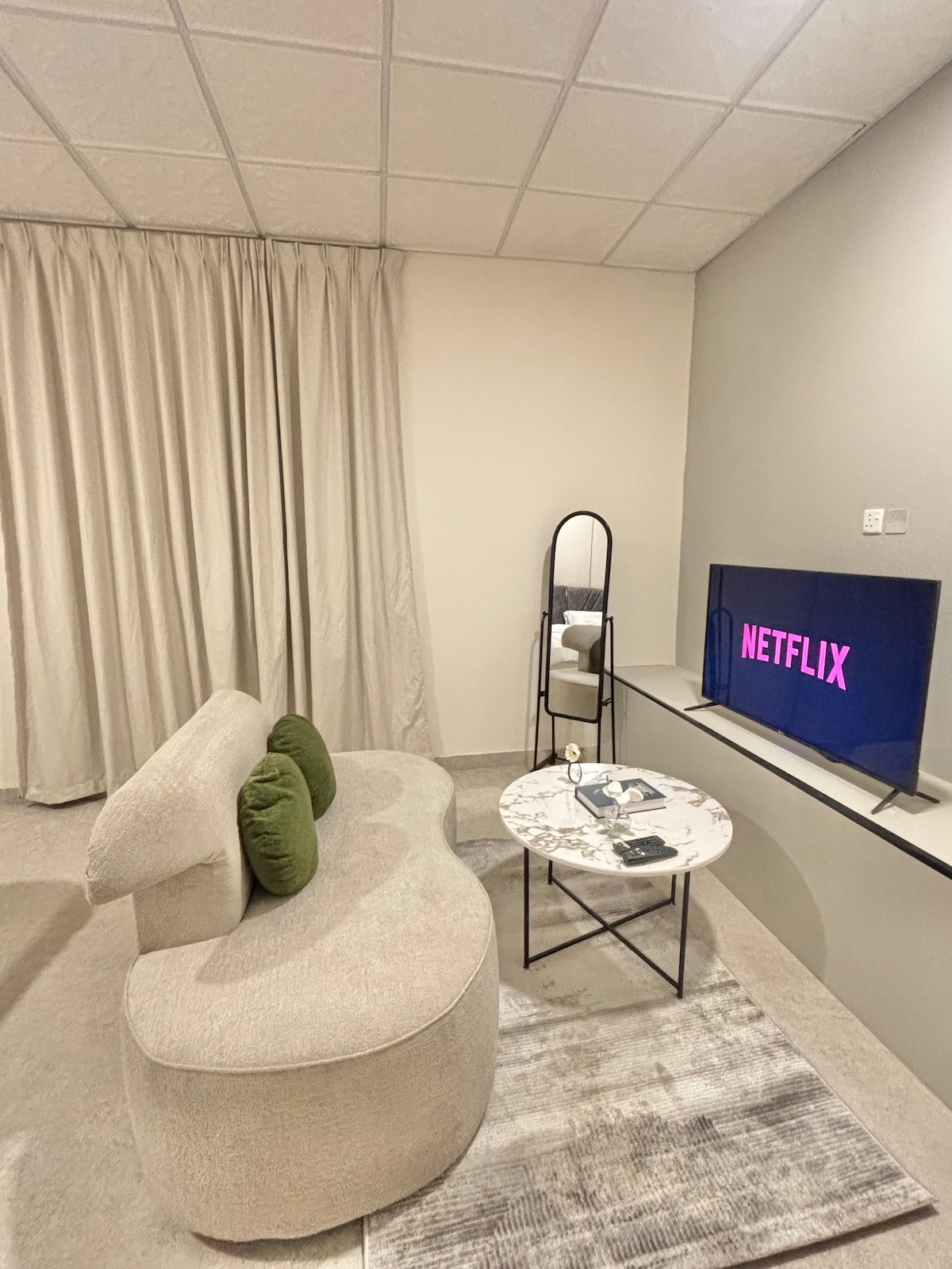 مرحبًا بك في شقتنا الفاخرة، التي تجمع بين أناقة الفندق والتصميم الحديث، مما يوفر إقامة استثنائية تتجاوز التوقعات. تتميز غرفة المعيشة المنفصلة الواسعة والمصممة بأناقة، بأرائك مريحة وتلفزيون ذكي للترفيه. توفر غرف النوم مراتب عالية الجودة للنوم المريح. تقع في قلب المدينة، وهي قريبة من المعالم السياحية والمطاعم. احجز الآن لتجربة لا تنسى.