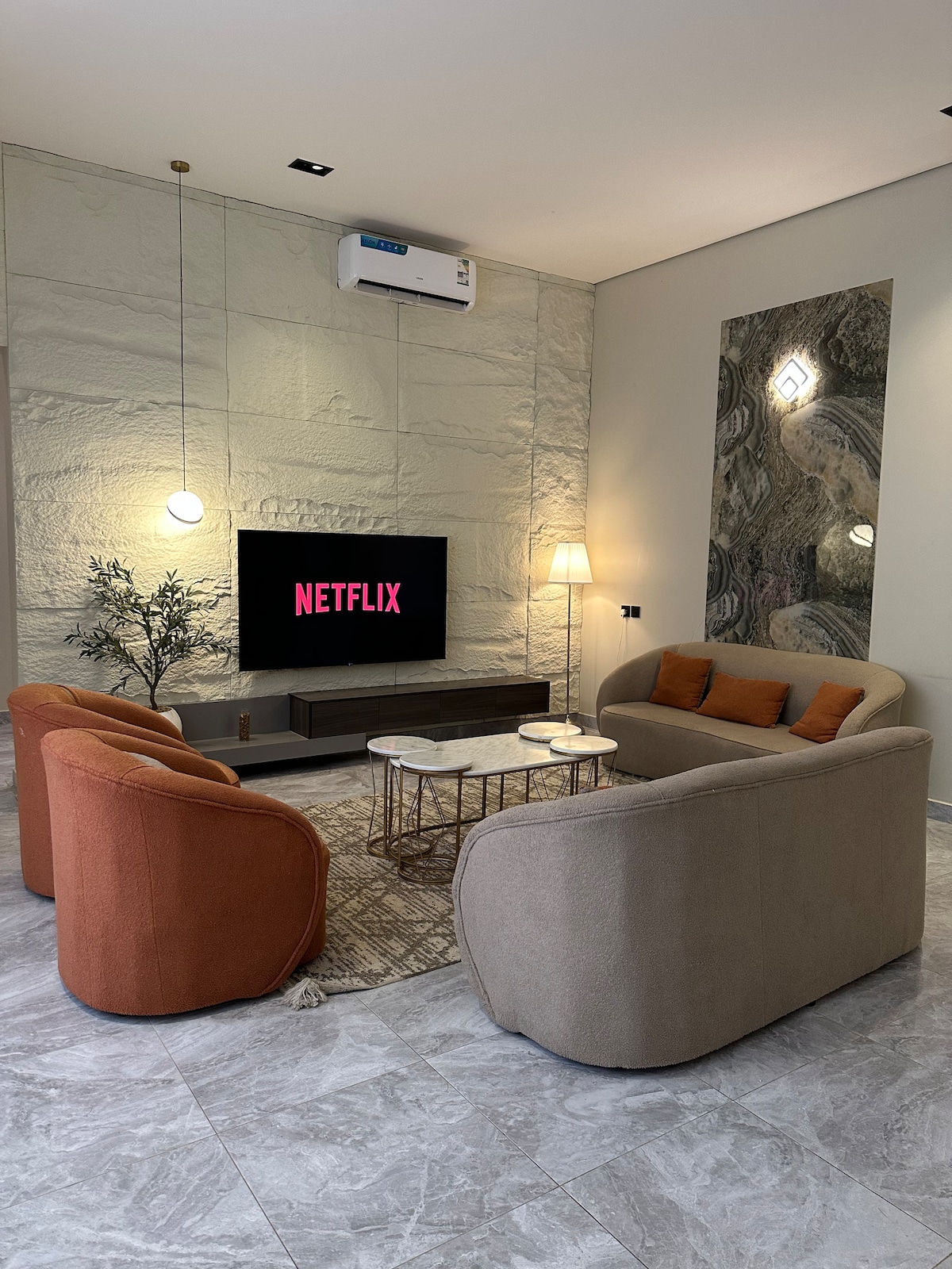 مرحبًا بك في شقتنا الفاخرة، التي تجمع بين أناقة الفندق والتصميم الحديث، مما يوفر إقامة استثنائية تتجاوز التوقعات. تتميز غرفة المعيشة المنفصلة الواسعة والمصممة بأناقة، بأرائك مريحة وتلفزيون ذكي للترفيه. توفر غرف النوم مراتب عالية الجودة للنوم المريح. تقع في قلب المدينة، وهي قريبة من المعالم السياحية والمطاعم. احجز الآن لتجربة لا تنسى.