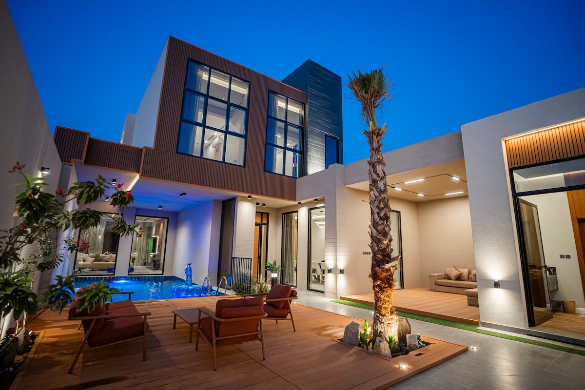 ڤيلا بتصميم مودرن حديث بثلاث غرف نوم ماستر وبلكونه ومسبح عصري وحديقة مطلة . راح يوفر لك الراحة ويصنع يومك لقضاء وقت ممتع مع عائلتك واصدقائك.اتمنى لك اقامه سعيده وحياك الله ضيفنا.