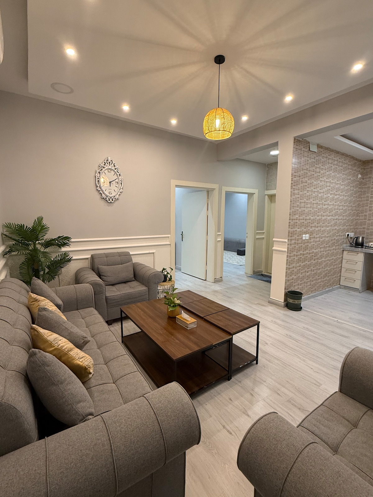 *شقتك الفندقية الفاخرة: تجربة راحة ورفاهية* استمتع بتجربة فندقية فاخرة في شقتك الخاصة. مع تصميم داخلي أنيق وديكورات جميلة، ستجد نفسك في عالم من الهدوء والاسترخاء. - غرفة معيشة فاخرة مع أرائك مريحة وتلفزيون 70 بوصة مع دقة 4K. - غرفة نوم ماستر مع سرير كبير ومرتبة مريحة. - تجربة سنمائية مع نظام سماعات محيطية. - ركن قهوة مجهز بأفضل أنواع القهوة والمشروبات. - إنترنت مجاني عالي السرعة لتبقى متصلاً دائماً. *استمتع برفاهية لا تُنسى* في شقتك الفندقية الفاخرة. هل أنت مستعد لتجربة فريدة؟