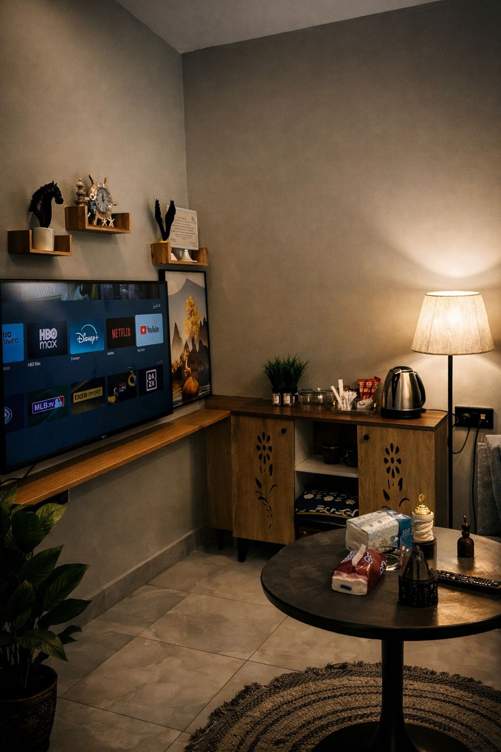 قبل التأثيث وضعت نفسي مكان الضيف و البحث عن كل ماهو مريح للجسم و العين و تم الاختيار بناءً على ذلك تتميز الشقة بوجودها في مكان هادئ و قريبه من الكوفيهات و جميع الخدمات دخول ذكي باستخدام كود متوفر غرفة نوم بسرير مزدوج مريح و غرفة نوم اخرى ب 2 سرير فردي يتوفر صالة بكنب مريح مع وجود شاشة 70 بوصة مع توفر حساب اي بي تي ڤي لمشاهدة المباريات و الافلام و المسلسلات توفر واي فاي توفر مطبخ مع وجود ثلاجة و غلاية و الة قهوة و مايكرويف نتمنى لكم اقامة جميلة مع شقة سُبات الفاخرة