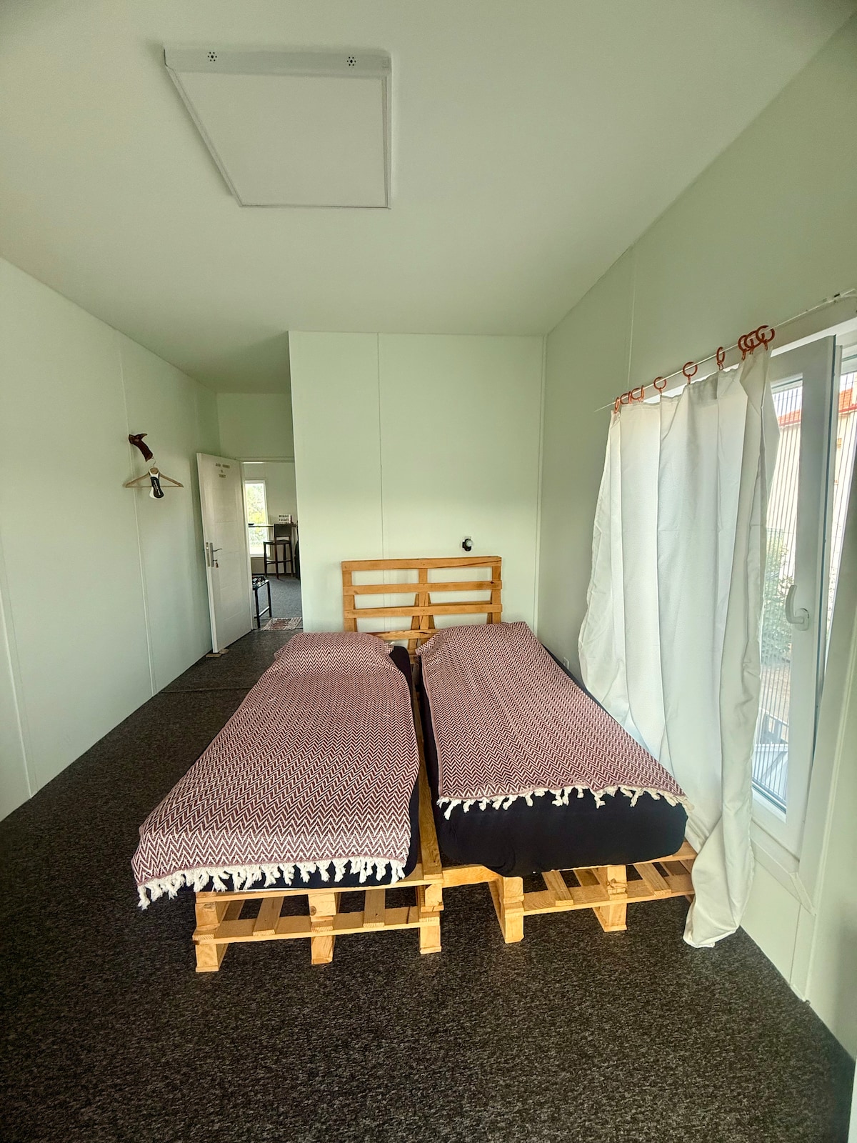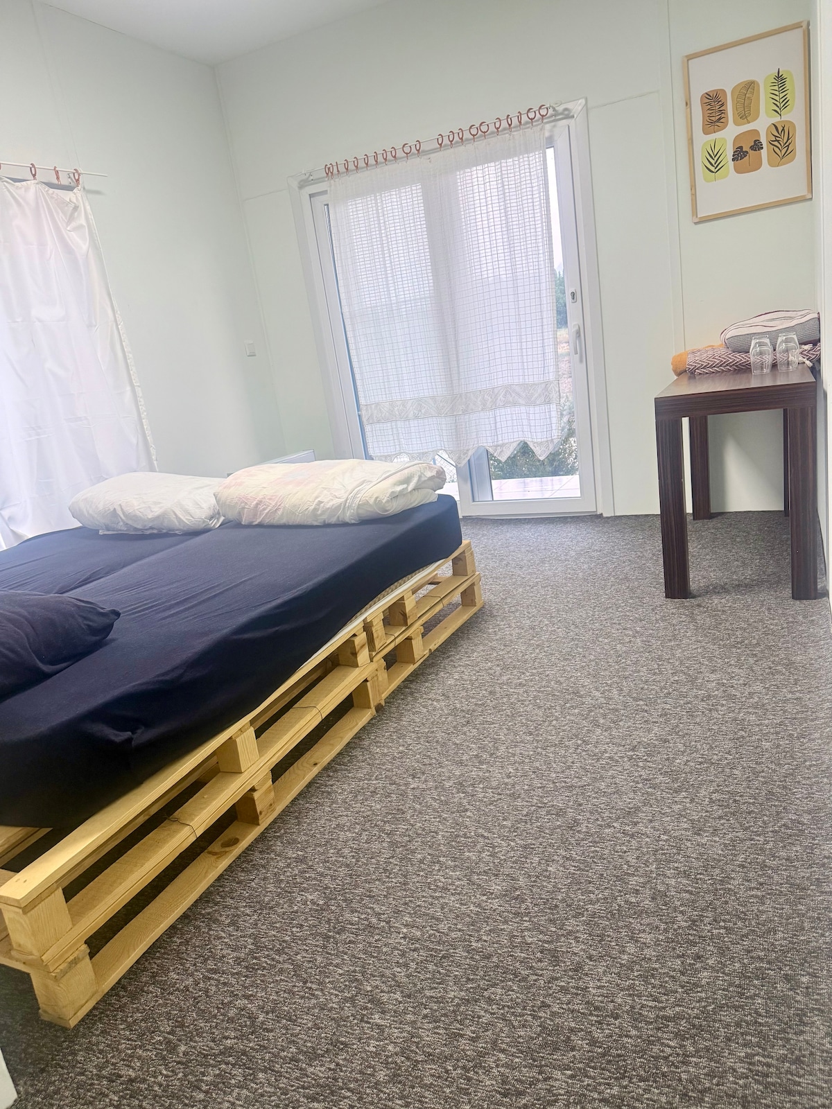 Our wooden house is located in a big private garden. It offers privacy and uninterrupted views of the beautiful surroundings. The self-catering accomodation. The house is open-plan living area with a single bed, an eating area and kitchenette, with a separate bedroom a double bed and bathroom. The house is fully equipped, bedding and towels are provided. Sit on the deck and enjoy the view while listening to the sound of nature and the river flowing beside you. Have a nice time :)