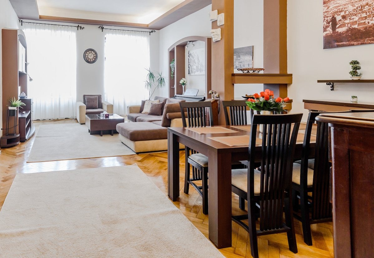 Quiet central apartment with terrace views, just a short walk from Old Town, museums, cafés and Sala Palatului. Newly renovated and designed for comfort, the flat offers high ceilings, fast Wi-Fi, self check-in, a dedicated workspace, air conditioning, a fully equipped kitchen and a queen bed. Ideal for couples, solo travellers and longer city stays who want to be close to everything without the noise. High ceilings apartments Bucharest | MAX HBO | SkyShowtime |Local TV