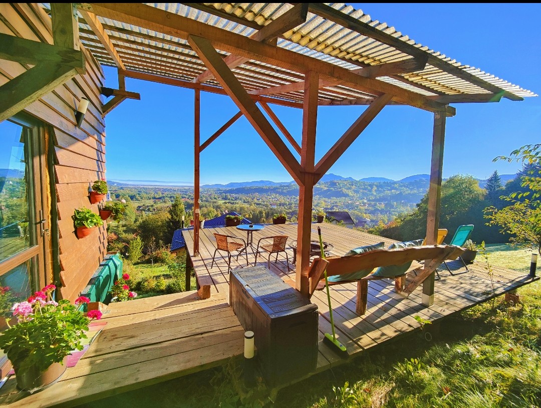 Our Piece of Dream was designed to offer not just accommodation, but a truly unique experience. Staying here feels like living in a cozy wood cabin, with the breathtaking view of a mountain retreat and the intimacy of the forest, blending rustic charm with modern convenience. Guests are welcome to play with our Bernese Mountain Dogs, and families with children will also find a safe and fun playground space to enjoy. Our complex includes two houses: Piece of Heaven and Piece of Dream.