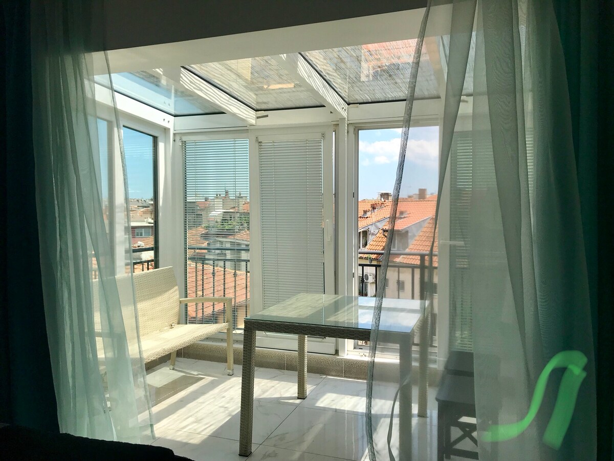 Ein sonniges Dach-Studio im Herzen von Burgas. Hier finden Sie alles - Liebe, Ruhe, Party und vor allem Sonne und gute Laune! Das Dachstudio ist neu renoviert, hat eine voll ausgestattete Küche, TV, Internet, Bad (Dusche und WC) und ist vor allem mit Top-Lage! Überqueren Sie die Straße und Sie sind im Garten, weitere 5 Minuten zu Fuß und Sie erreichen den Strand. 10 Minuten in die andere Richtung und Sie landen im Zentrum von Burgas - die Einkaufsstraße mit all den Cafés, Geschäften, Bars.