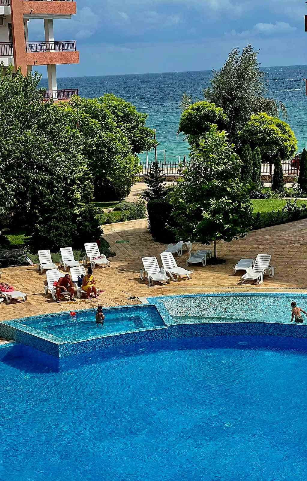 Двустаен апартамент- напълно оборудван. Намира се в нов затворен комплекс със сезонен открит инфинити басейн (40м.) басейна работи от началото на юни до края на септември- апартамента е в затворен комплекс “Бургас бийч 2”. На първа линия на морето със собствен подход за плажа. На 150 метра има хранителен магазин, 5 минути пешеходно от спирка на градски транспорт. В близост целогодишни и сезони ресторанти.