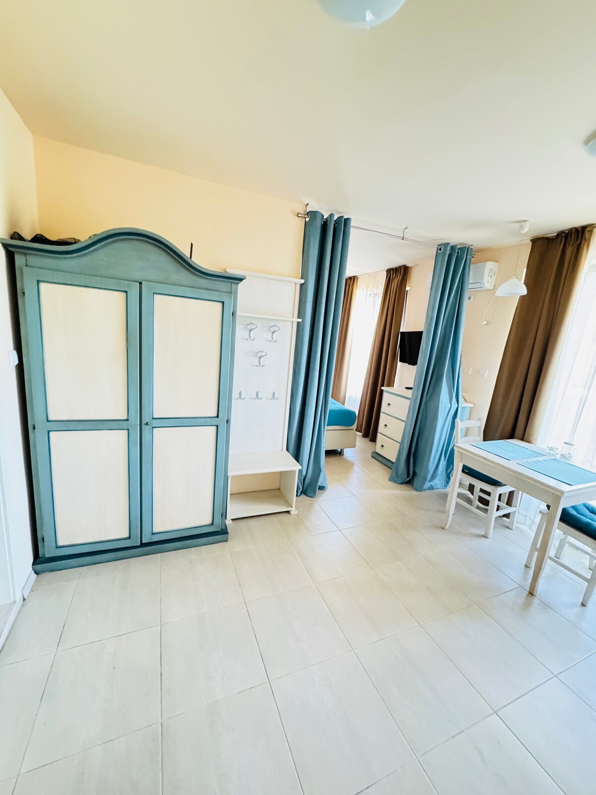 Santa Marina is a beautiful holiday village located near old town Sozopol. It is famous for its large and green territory. Our villa is the closest to tennis courts! Apartments are freshly renovated: ☑️smart TV ☑️comfortable terrace with a sea view and relax zone ☑️beach towels and kids toys ☑️coffee machine 🏖️5 large swimming pools with jacuzzi and 2 sand beaches 🍽️4 restaurants, pool bars and 2 mini markets 🎾6 modern tennis courts, football and volleyball field