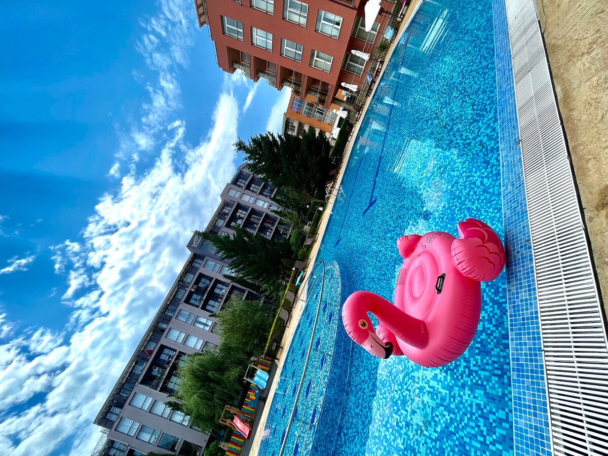 🌴 Relax by the Pool at Our Sunny Beach Resort Apartment Welcome to your perfect Sunny Beach getaway! Our modern ground-floor apartment offers direct access to a VIP pool, combining comfort, convenience, and resort-style relaxation-ideal for couples, families, or friends. Located in the sought-after Harmony Suites 16 Grand Resort, you’ll enjoy a peaceful environment while staying close to everything Sunny Beach has to offer.