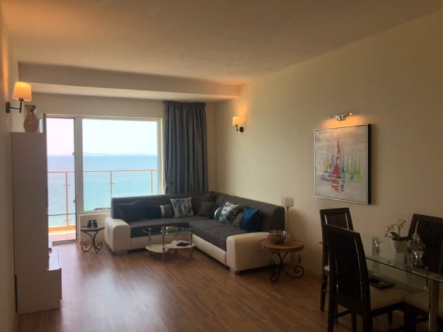 EXPERIENCE THE TRANQUIL PART OF SARAFOVO - BURGAS IN OUR CHILL & COZY BEACH CONDO Enjoy this 1 bedroom condo with amazing ocean and city views! You will enjoy a full kitchen equipped for your culinary needs. Your living room has a pullout couch and small balcony with a fabulous view! Flat screen TVs are in both the living room and bedroom. There is also a washer and dryer in your unit! Luxury gated complex, with reception desk, fitness, sauna, wonderful pool and relaxation area.