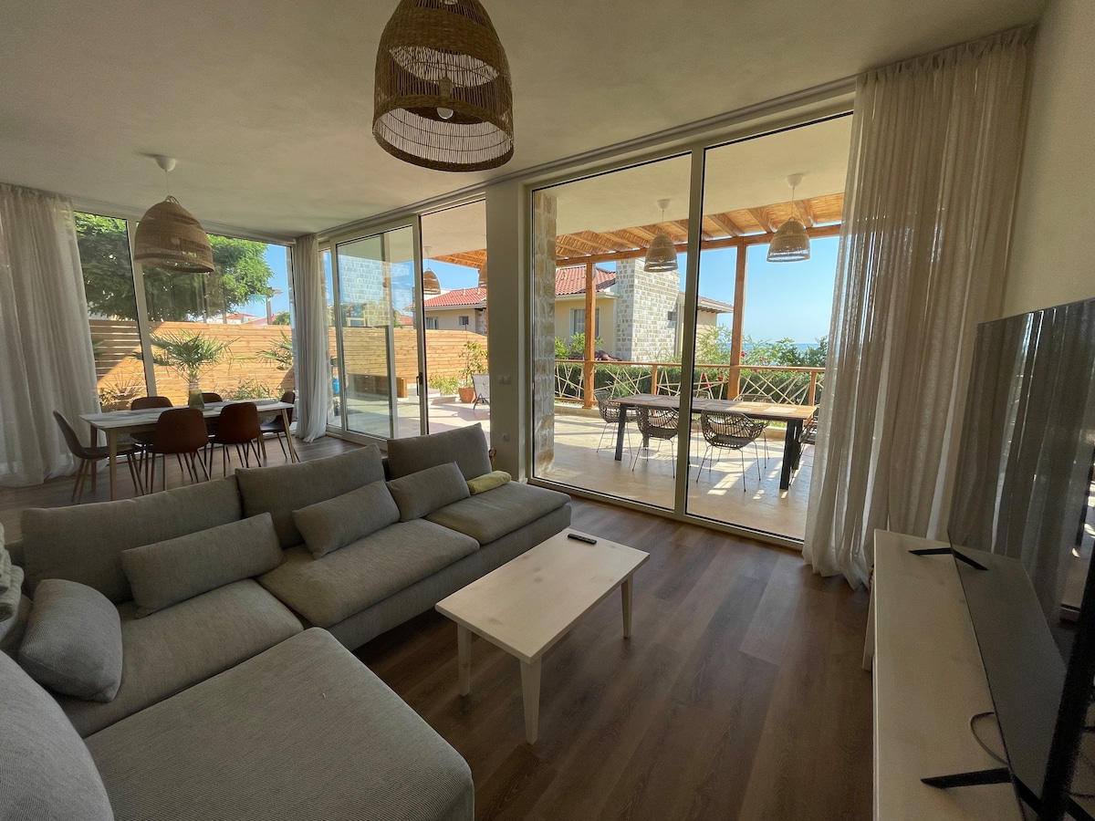 宽敞的海景房,带庭院,靠近海滩
