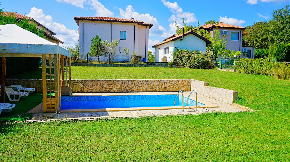 Dear guests, Welcome to our cheerful, spacious and family-friendly villa which is located in a quite area with a charming and elegant Bulgarian style architecture. "The Vineyards" is a 4* resort a step away from the historical town of Nesebar, Sunny Beach and Sveti Vlas. As our guests, you can enjoy the benefits of the3 bedrooms villa with own swimming pool, bright and cozy living space with a view to the garden and to the pool. Welcome to Cabernet 8! We wish you a nice stay! Ivo and Nadia