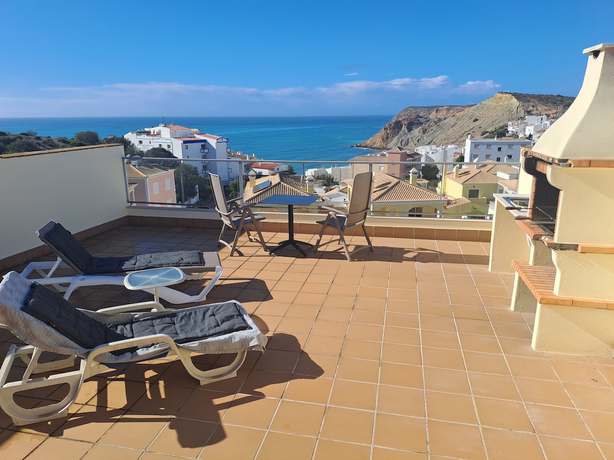 Bright & colourful two bed family home in the centre of Burgau, just 2 minutes walk to the beach! The open plan living/dining area, sociable kitchen & balcony all provide stunning views over village, sea cliffs and even a teeny sea glimpse.. The private balcony perfect for soaking up the sun, barbecuing an dining alfresco. 2 bedrooms, family bathroom & desk work-space, with unlimited fibre internet for working holidays. Satellite TV, beach toys, sofabed.. fully stocked! Sleeps 4/5 (+ baby)