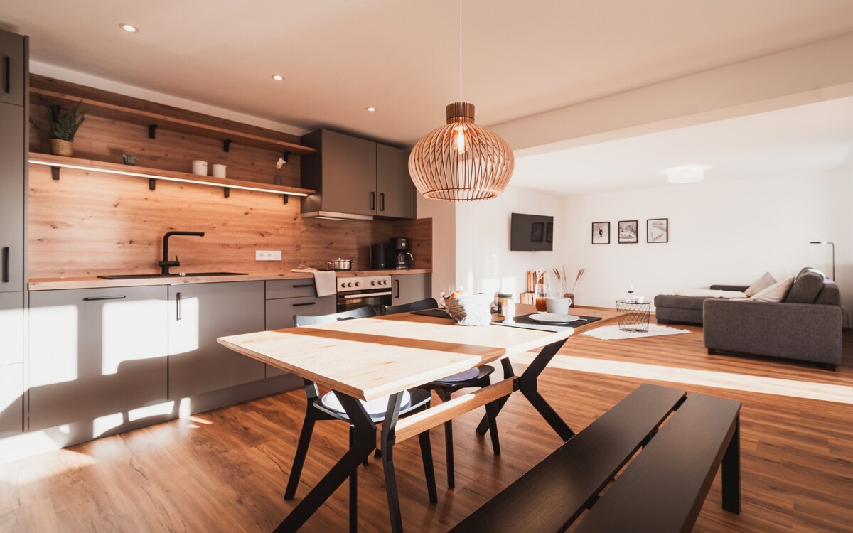 Du möchtest ein paar erholsame Tage in der Natur und den Bergen verbringen? Dann ist mein Apartment genau richtig - es befindet sich inmitten der Natur (1.2km zum Ortskern) mit Bach direkt vor der Tür! Von hier aus kann man direkt zum Wandern, Biken oder anderen Outdoor Aktivitäten starten. Eine moderne Einrichtung, voll ausgestattete Küche und Glasfaser-Internet laden zum Entspannen oder auch Arbeiten im Apartment ein. Klick Dich durch die Bilder, ich freue mich über deine Nachricht!