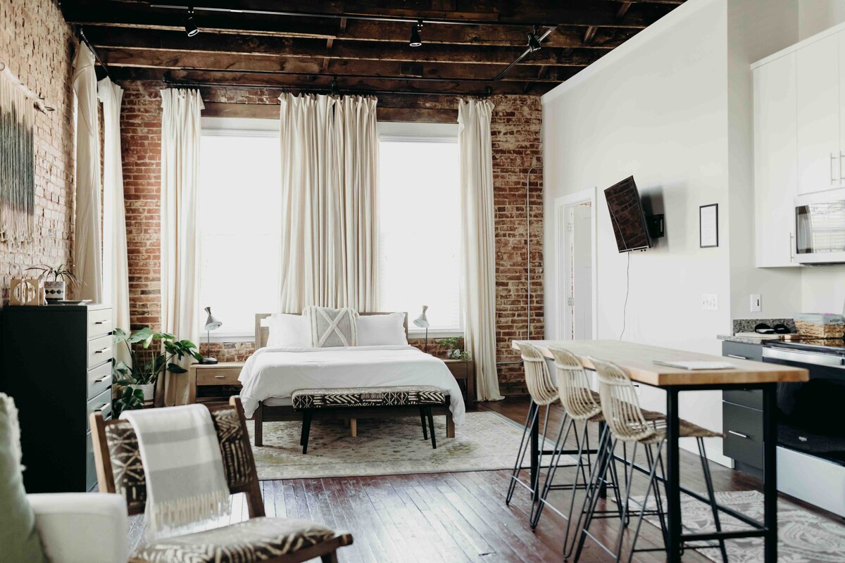This beautiful loft is located in a newly restored historic building in downtown Sparta, Tennessee and offers convenient travel times to multiple state parks including Fall Creek Falls, Burgess Falls and Rock Island. If you are looking for a leisurely small town with boutiques, a brewery and a coffee shop or you have a full weekend of waterfalls to check off your bucket list, then The Overlook Suite is the perfect place to stay and explore it all!
