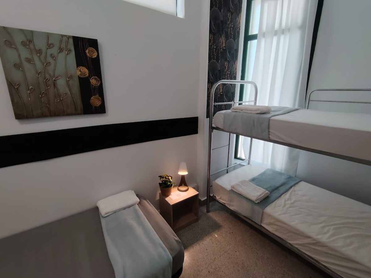 The Loft House Madrid Cama en dormitorio con luz natural. Literas de 2m de largo. Cada cama tiene su luz personal, enchufe, usb y balda, cortina blackout para mayor privacidad y un amplio cajón individual que se puede cerrar con un candado alquilable en recepción. Disponen de: Aire acondicionado Calefacción WIFI de alta velocidad Baños y duchas compartidos en el pasillo Manta Sábanas Toallas (extra con suplemento y bajo petición)
