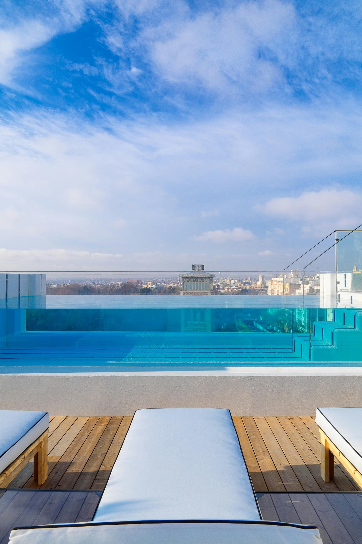 Quiet, modern 16–20 m² room with Ac, free Wi-Fi, minibar, safe, pillow menu, and full bathroom. Centrally located in Chamberí near Paseo de la Castellana and metro links. Enjoy on-site gym, Mediterranean restaurant, lobby bar, and 24-hour reception. Buffet breakfast and secure parking available for an extra charge.