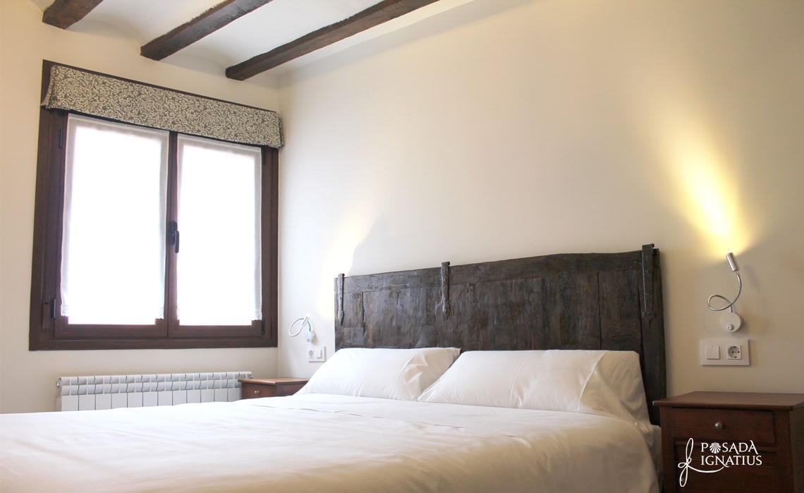 Las habitaciones están vestidas con Muebles Lufe, productos ecológicos fabricados en el País Vasco, con materias primas locales, certificados ecológicamente con el sello PEFC que garantiza la sostenibilidad de los bosques. Para hacer más acogedora tu estancia, nuestras habitaciones están decoradas en estilo rústico, resalta el blanco de sus paredes, edredones y sábanas, para favorecer tu descanso. Nuestra ropa de cama está fabricada en algodón de 300 hilos.