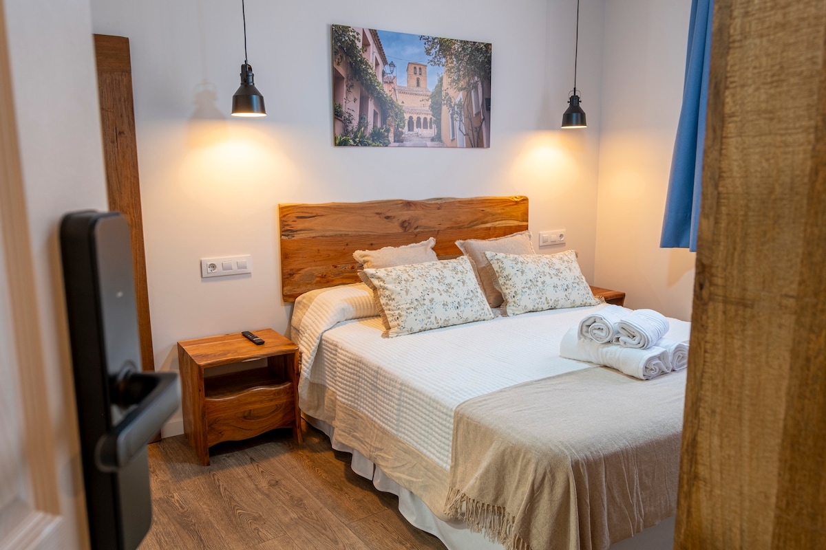 Pequeño hotel con un encanto único que te adentra en una de las tradiciones más antiguas de nuestra tierra, la cultura del vino. En pleno casco histórico y rodeado por dos iglesias del románico del siglo XI y XII, a pocos metros del castillo con su ladera de bodegas tradicionales. Cuenta con 4 habitaciones acogedoras equipadas con todo lo necesario para una estancia confortable. El hotel acoge una bodega tradicional, adaptada a museo y con espacio para degustar los vinos de la zona. Habitación 2
