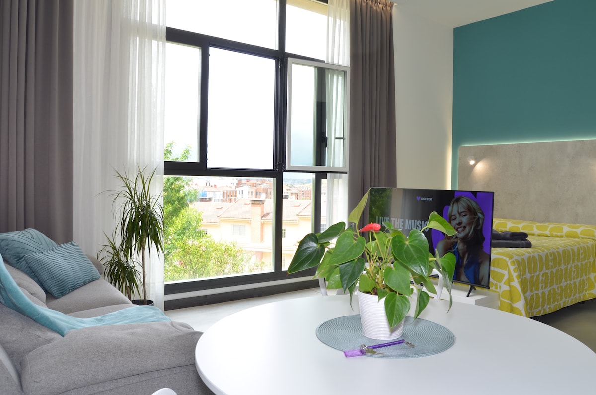 Apartamentos nuevos en edificio residencial en zona ajardinada junto al centro histórico de la ciudad. Rincón confortable y silencioso para descansar o trabajar, con grandes ventanales y toda la comodidad de los sistemas más actuales de calefacción y ventilación. Espacio versátil para pasar un fin de semana en pareja, visitar la ciudad con la familia o para trabajar durante algunas semanas o incluso meses.
