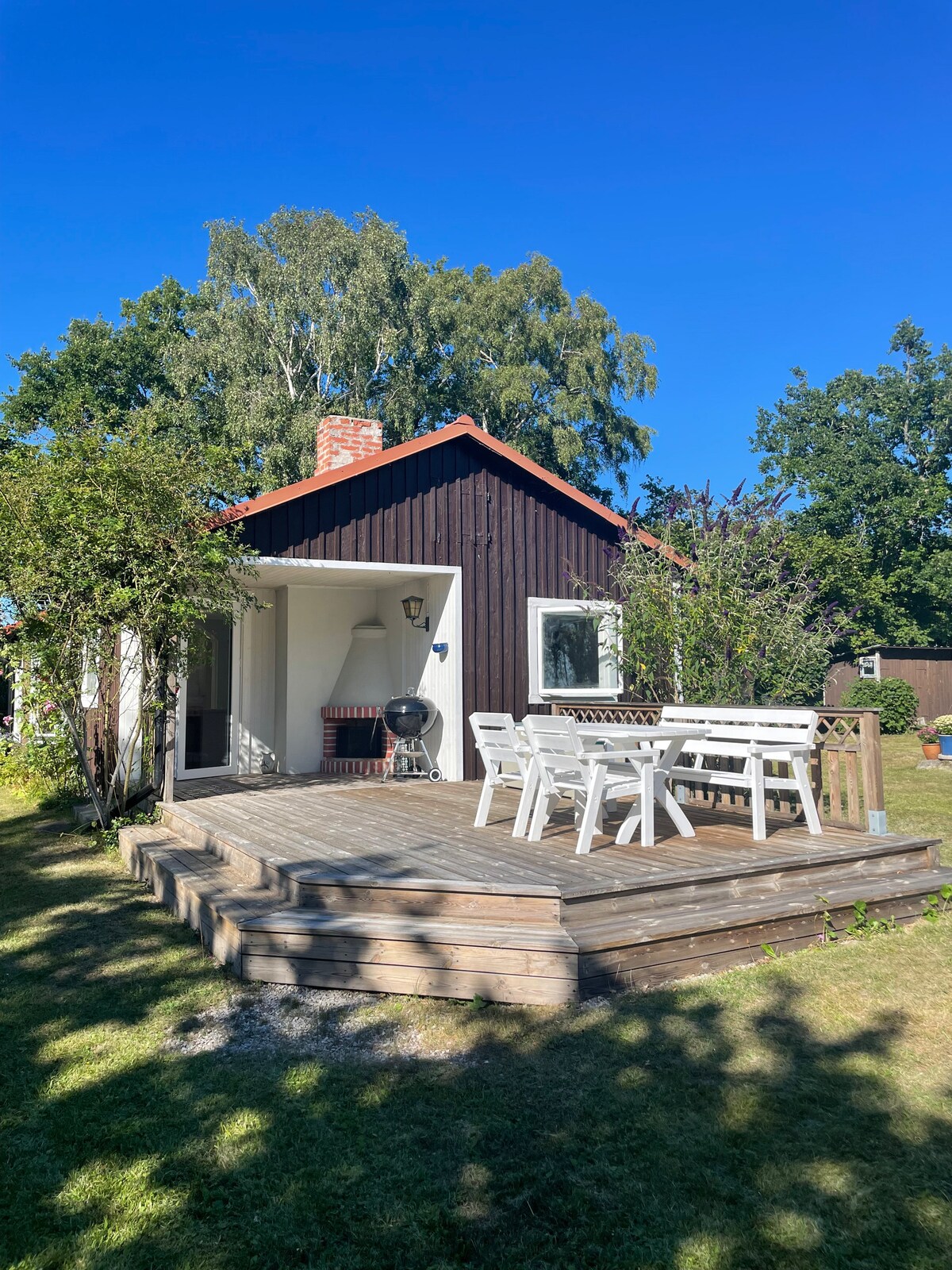 En modern stuga med 6 sovplatser i vackert kulturlandskap omgiven av ängar och ekskogar. Huset har många altaner så det är bara att välja det som passar. Kvällssolen är underbar! Huset har alla bekvämligheter du behöver som till exempel disk- och tvättmaskin, grill samt stabilt Wi-Fi. Du städar själv efter din vistelse och du måste ta med eget sänglinne och handdukar. Täcken och kuddar finns. Södra Gotland erbjuder magiska miljöer med sandstränder, raukar och ett rikt kulturliv.