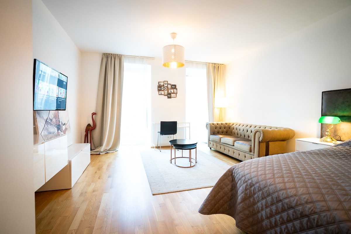 Perfectly located beautiful studio with balcony over quiet inner courtyard. The city center, the major museums and the best shopping areas are just minutes away walking; two major U-Bahn (underground) stops 3 min away conveniently connect any tourist within minutes to both Hauptbahnhof, the airport train or airport buses. Enjoy the quietness of a beautiful inner city home and have lively Vienna with all its sight-seeing and dozens of restaurants, shops and parks just minutes away.