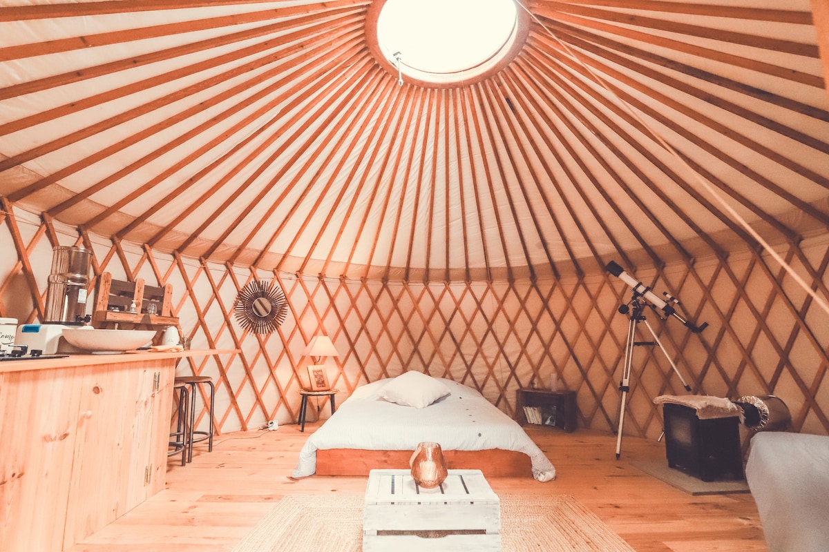 Vous recherchez calme, tranquillité et simplicité, notre yourte est faite pour vous! Meublée pour 4 personnes, coin cuisine avec réfrigérateur, gazinière 4 feux, four, cafetière, bouilloire, BZ, toilettes sèches à l’interieur, chauffage. La douche (sauf en hiver) se situe derrière la yourte avec une place pour barbecue à l’avant. Vous apprécierez ce bien vivre en toute simplicité, vous en ressortirez ressourcé et détendu, reconnecté avec la nature. ⚠️ Regardez bien toutes les consignes