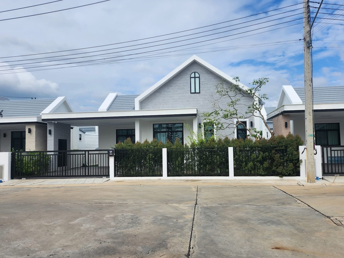 Stylish House Near the International Circuit This modern house is ideally located near Chang Arena (4.2 km), Chang Circuit Buriram (5.9 km), and Big C (1.5 km). The house: - Two high-quality bedrooms with comfortable queen-size beds - Two bathrooms - A living room - A fully equipped kitchen with a washing machine - 500 Mbps Wi-Fi and cable TV - Complimentary coffee and drinking water The two bedrooms are located on the SECOND floor, while downstairs you will find the living room and kitchen