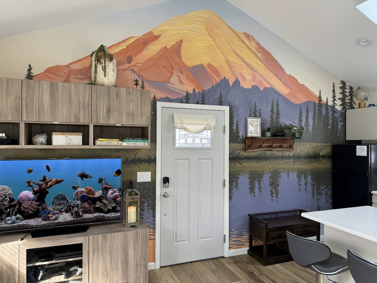 Stay in the heart of Ballard at our 1st floor private self-check in Studio Oasis with comfortable king bed. Enjoy private parking with cutting-edge 50 amps electric car charger. Walk 3 minutes to Market street with its trendy restaurants, bars, and shops, or hop on public transport at the corner. Explore Ballard's touristy scene, visit the locks' fish ladder, or relax at Golden Gardens beach park, all just a short bike ride or walk away. Experience urban comfort in a vibrant neighborhood.