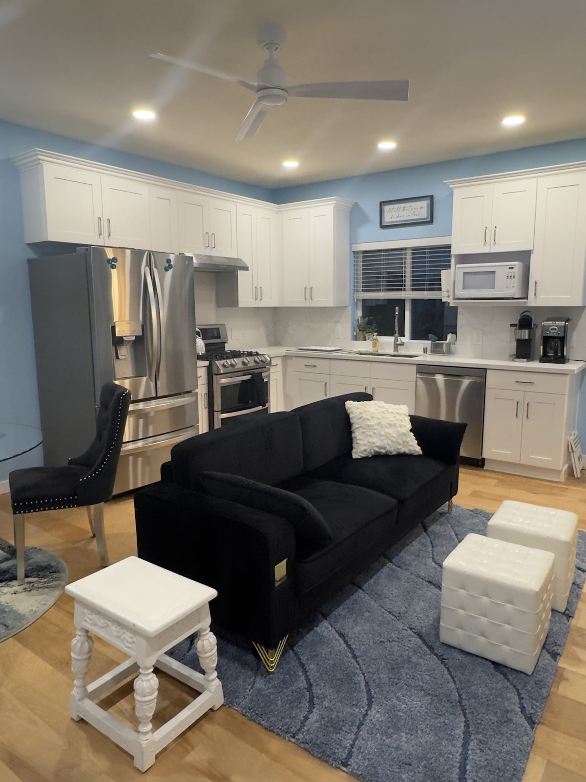 This basement is newly remodeled with a private entrance. Includes a large living room with a dining space, private bedroom with a desk, full private bath, kitchenette with a fridge, microwave, and coffee maker. Great for a for a couple or one person. It is located close to Proctor district and Point Ruston. 10 minutes from downtown Tacoma.