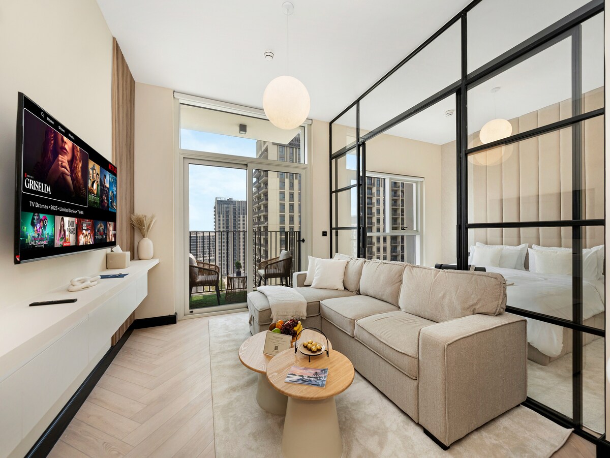 Our luxury studio apartment is located in the heart of Dubai, within walking distance to Dubai Mall, Burj Khalifa, and the famous Dubai Mall fountain. 🌆✨ Damac Upper Crest building offers fantastic amenities: 🚀 High-speed WiFi 🏋️ Fully equipped, spacious gym 🏊 Infinity pool 🧖 Sauna and steam room 🌿 Spacious balcony 🛏️ Hotel-quality linens/towels 🎨 Upscale interior 🍳 Fully equipped kitchen