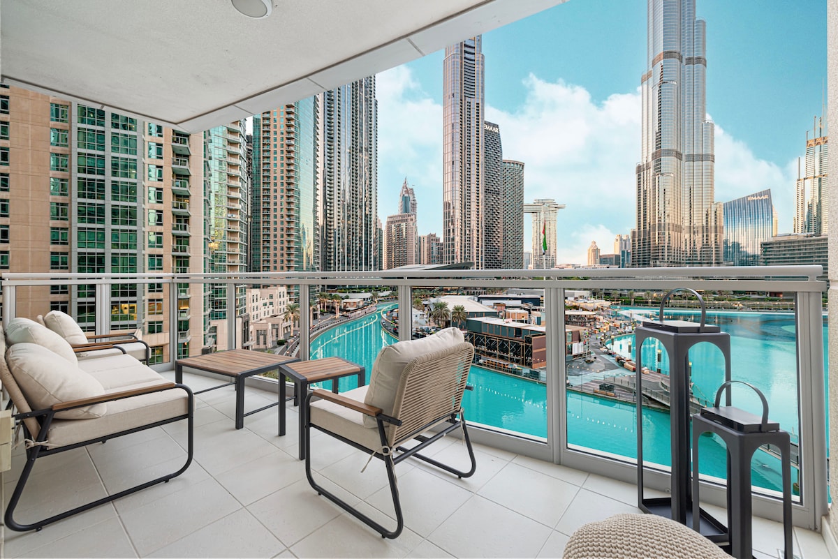 豪华高层1卧室房源|哈利法塔和运河景观