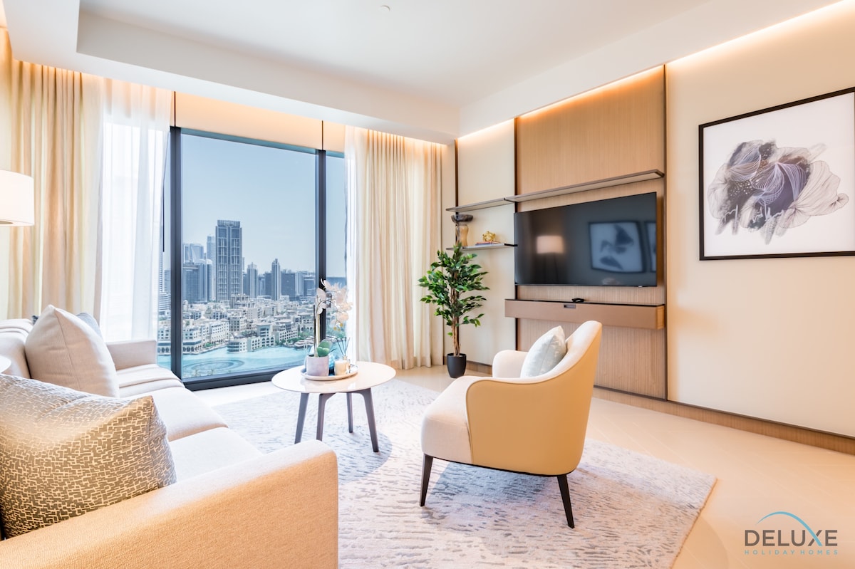 About this property Experience front-row Burj Khalifa and Fountain views from every room of this designer 3BR sanctuary at Address Residences Dubai Opera. Perfectly curated for an elite retreat, this home features King beds, private balconies, a dedicated workspace, and a professional vanity station. Enjoy bespoke finishes and world-class amenities just a 4-minute stroll from Dubai Mall and the Opera. Your prestigious Downtown lifestyle starts here. ✨