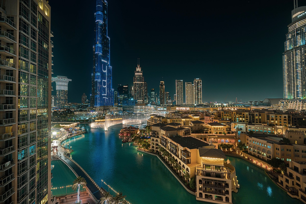 Stay in our chic 2-bedroom apartment, just a 5-minute walk to Dubai Mall, Dancing Fountain, and Burj Khalifa. Conveniently located near the metro station, it offers incredible views of Burj Khalifa and the Fountain from the balcony. Immerse yourself in rich cultures, thrilling activities, and iconic landmarks. Relax in style with modern amenities, high-speed WiFi, a fully equipped kitchen, and serene spaces. Perfect for exploring vibrant city life while enjoying breathtaking skyline views!