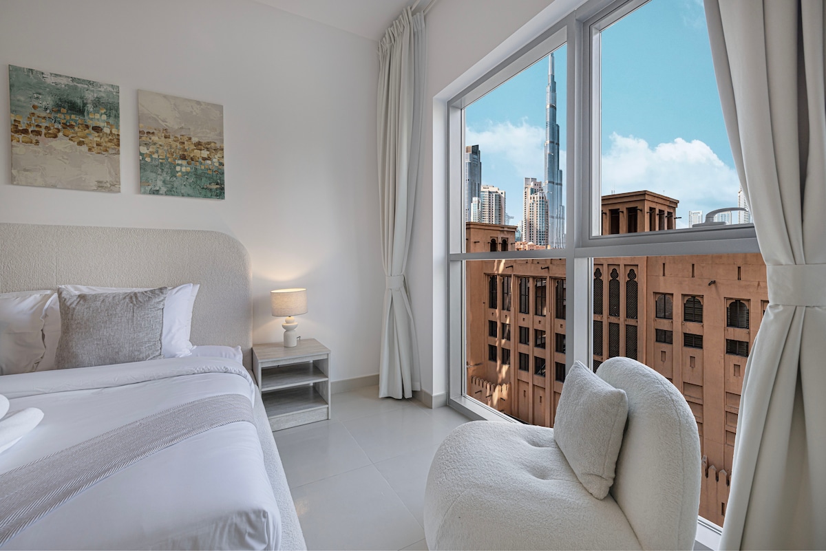 豪华1卧室,可欣赏哈利法塔景观|步行即可抵达迪拜购物中心