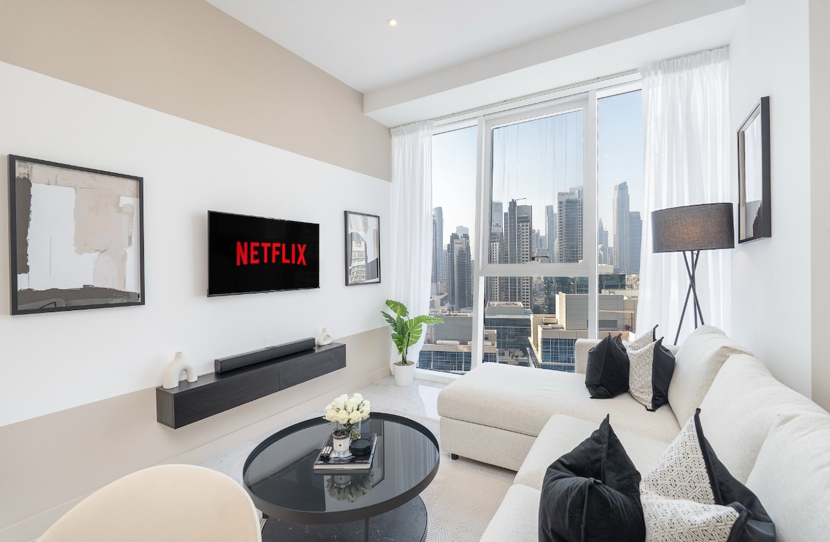 Luxury Skyline Stay | Iconic Burj Khalifa Views Step into our brand-new, elegantly designed apartment in the heart of Business Bay. Enjoy panoramic and breathtaking views of the Burj Khalifa right from the whole apartment. Whether you're here to explore Dubai or unwind in style, this space offers the perfect mix of comfort, sophistication, and unbeatable location—just minutes from Downtown, Dubai Mall, and top dining spots. Ideal for couples, solo travelers, or business guests.