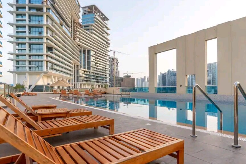 Welcome to your stylish getaway at Trillionaire Residences! This beautiful high-floor 1-bedroom apartment features a modern design, large Terrace with loungers and a breathtaking Burj Khalifa view, plush king-size bed, cozy seating area with sofa bed, and a fully equipped kitchen with Nespresso. Enjoy the gym, pool, 24/7 security, and free parking. Experience a luxurious escape in the heart of Business Bay - your perfect home away from home in Dubai.✨