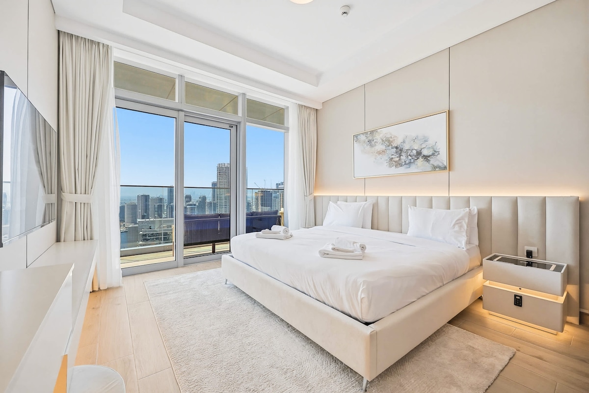 Amazing Penthouse floor 86 in Princess Tower "THE WORLD TALLEST HOME HOLIDAY PENTHOUSE" Brand-new (Sept 2025) ultra-luxury 320 m² Modern penthouse with breathtaking sea, Palm & Atlantis views. Features a private SPA with mini pool, Jacuzzi & emotional showers, 4+1 bedrooms, 2 master suites with Jacuzzi tubs, spacious living areas, and capacity for up to 16 guests. Perfect for families & groups seeking space, style, and unforgettable views.