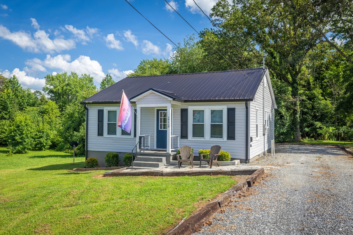 Relax with the family at this completely updated cottage built in the 1940s. Featuring two bedrooms with plenty of comfy relaxing area. Enjoy the backyard with a hot tub (inflatable), and night lighting. Grill on the charcoal or relax at the fire pit. Just in earshot of the apple orchard where you can satisfy your taste buds with a crisp fresh apple, apple cider slushy, or fried apple pie. Although rural this home is only 4 miles from interstate 40! Approx an hour from Asheville and Charlotte.