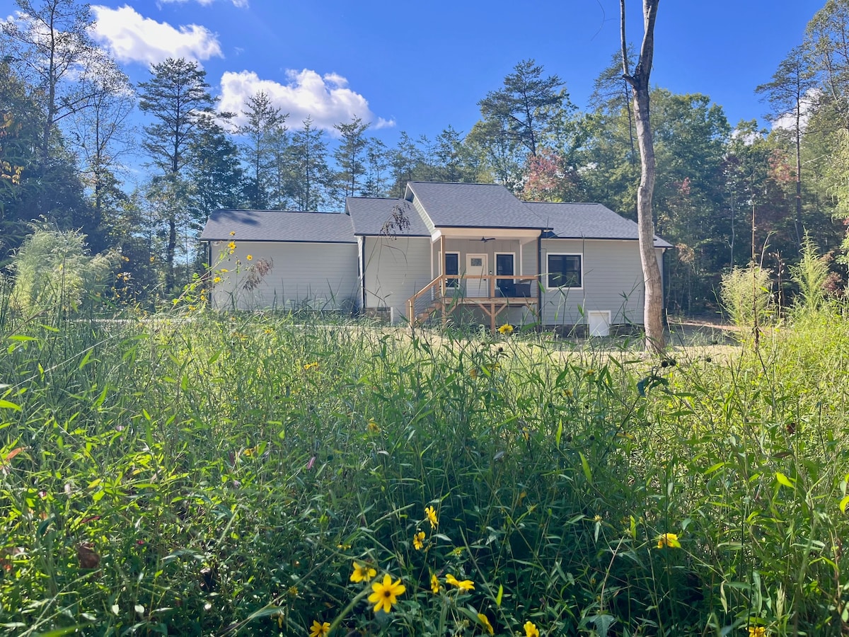 Outdoor enthusiast retreat, mountain biking and hiking heaven! Relax with the whole family at this peaceful, brand new adorable cottage nestled in the woods right next to the Fonta Flora trail. Jump onto the trail for hiking or biking winding around scenic Lake James for 30+ miles of beauty or walk 1 mile to the county beach for some splashing and sun bathing. Enjoy the evenings on the patio or around the fire pit, BBQ & picnic table. 5 mins away from Mimosa landing for boat launch.